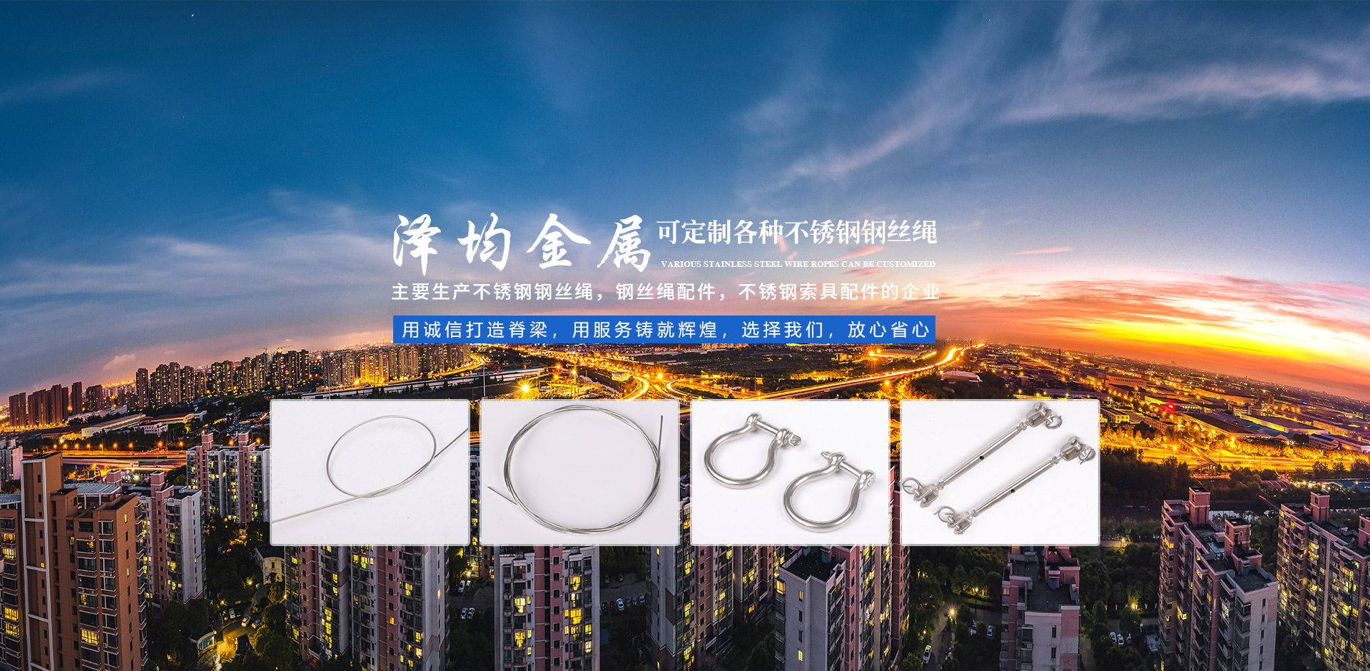 我公司生產不銹鋼鋼絲繩,鋼絲繩配件,不銹鋼索具配件等,是一家集研發、生產、銷售、售后為一體的綜合性企業。